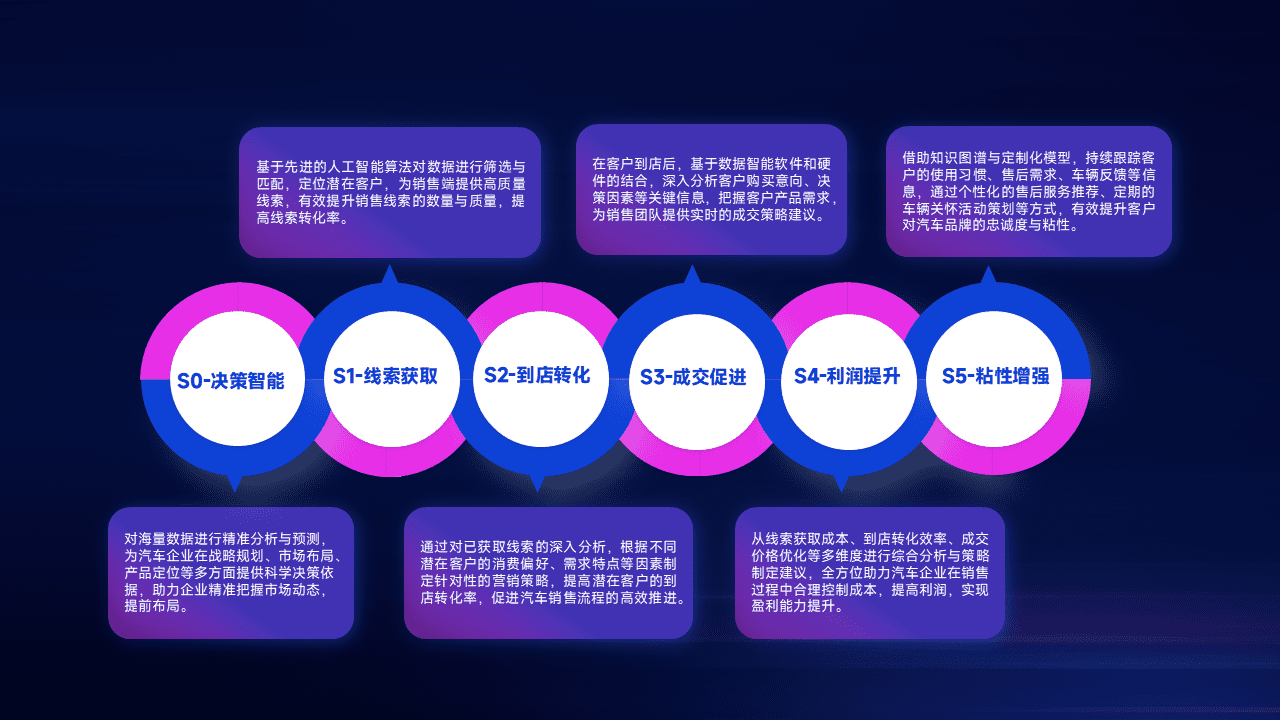 通过拓宽潜在客户来源、、、、优化线索分配并提高到店转化率,,以增强销售效率。。。。同时,,,,利用线索数据不断优化分析模型,,有效提升转化率,,,,扩大营销影响力。。。